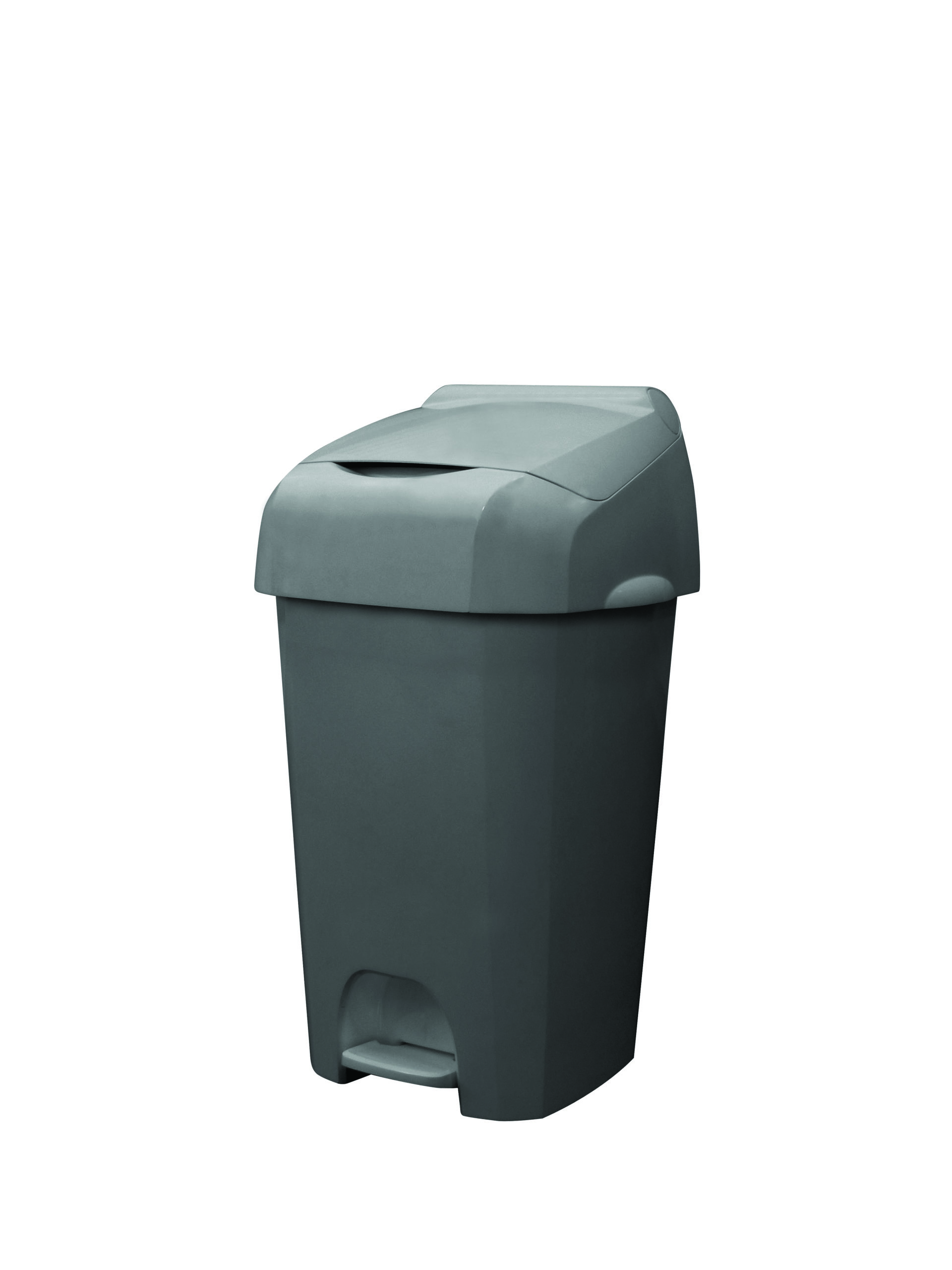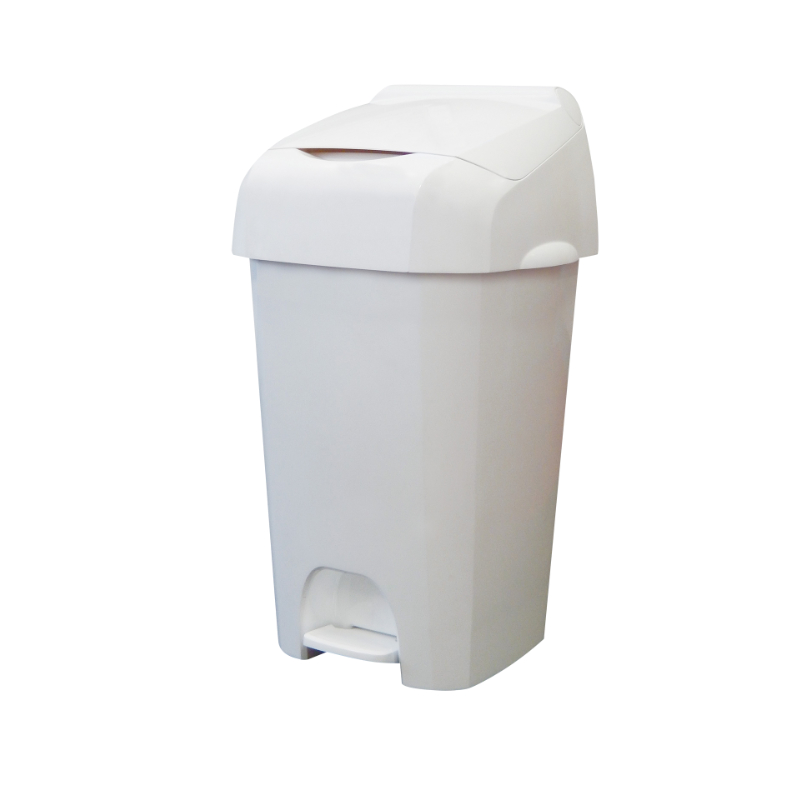- Also benefit from: • Large capacity makes it ideal for high traffic washrooms • Clean white and grey finish • Contemporary, easy to wipe down design • Designed to offer reliable, robust performance • Sloped lid prevents heavy items such as bags being placed on top, reducing the risk of breakage • Pedal operated for hygienic, no touch disposal of waste • Discreet, low friction modesty flap hides bin contents from view • Manufactured from ABS plastic for superior performance • Bag tidy hooks prevent liners from slipping during use • Hidden clip for freshener sachets to ensure powerful, pleasant fragrancing between services • Quick, tool free access